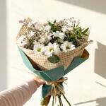 El Ramo de Margaritas Blancas “Silvestre Natural” es un bouquet fresco, sencillo y lleno de encanto que destaca por la belleza natural de las margaritas blancas, consideradas la reina de las flores silvestres. Su estilo ligero y natural transmite frescura, alegría y simplicidad elegante, convirtiéndolo en un detalle perfecto para cualquier momento. Este ramo de margaritas blancas con verdes naturales está acompañado de pequeños toques silvestres que aportan textura y movimiento al arreglo. Envuelto cuidadosamente en papel decorativo con estampado suave y acabado a mano, el bouquet refleja un estilo artesanal, natural y delicado.
