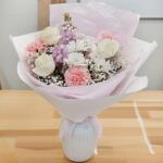 matthiola - 2 pce rosa - 3 pce clavel - 3 pce emballage - 1 pce chrysanthème arbustif - 1 pce paniculée (gypsophile) - 1 pce