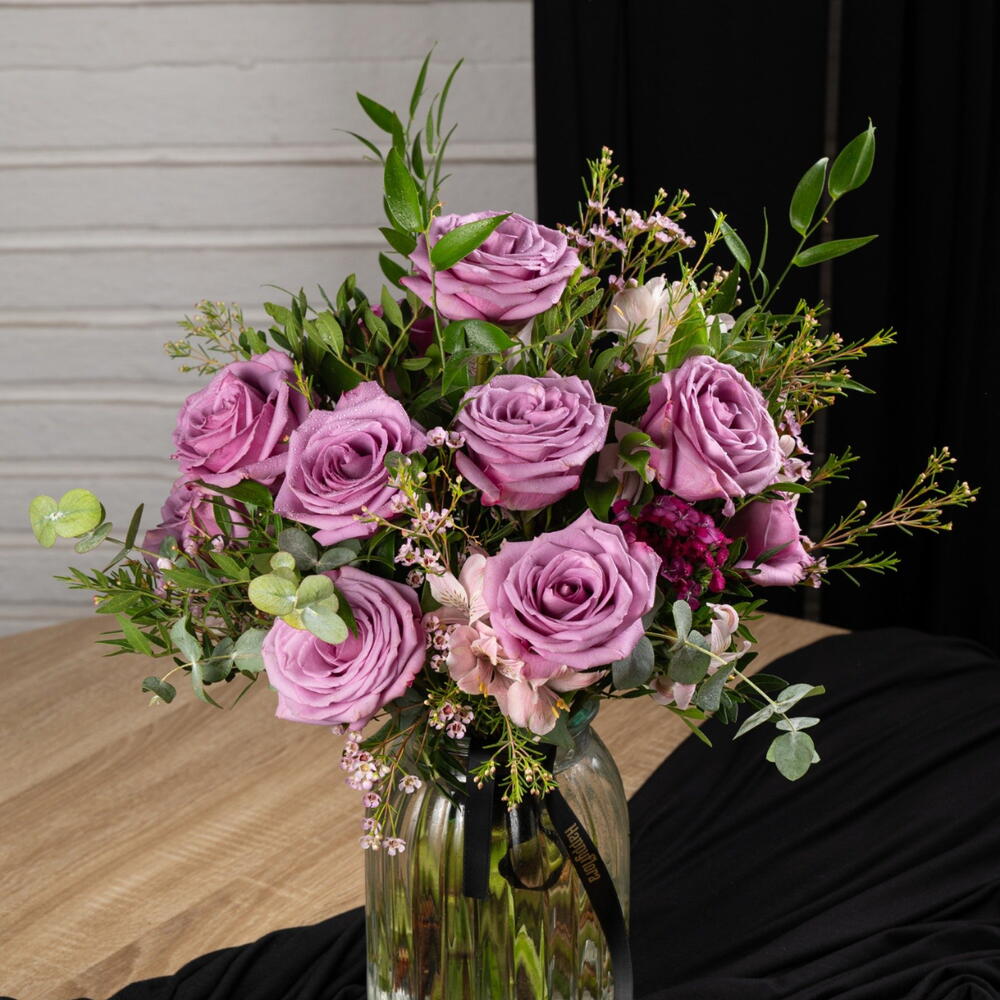 eucalyptus - 5 pce verdes - 4 pce fleur complémentaire - 3 pce roses malte - 7 pce