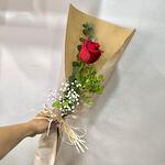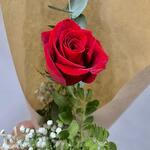 Une rose rouge présentée dans une délicate composition florale composée de gypsophile et de verdure naturelle, soigneusement emballée dans du papier kraft à la finition simple et élégante. Un cadeau intemporel pour exprimer votre amour, votre admiration ou votre gratitude en toute occasion. Parfait comme cadeau romantique, pour un anniversaire ou simplement pour surprendre avec un geste simple et significatif. Cette composition de roses naturelles est soigneusement préparée dans notre atelier, pour que votre message arrive toujours frais et spécial.