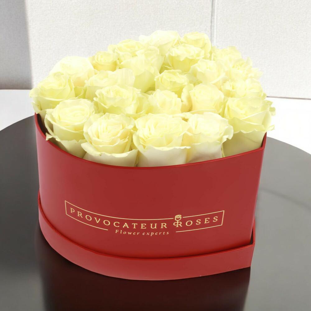 Roses blanches fraîches en Boîte Cœur