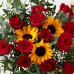 Rosas rojas y girasoles