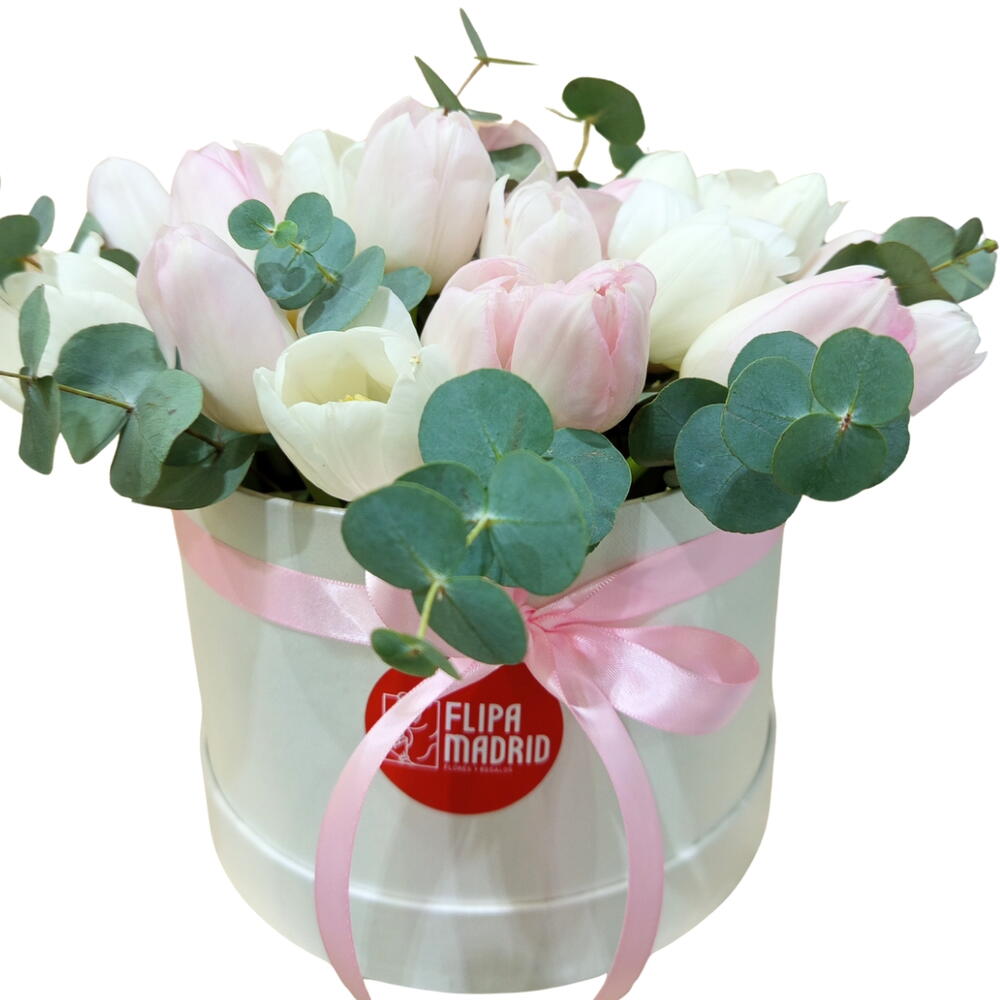 Boîte à chapeaux 35 tulipes roses et blanches