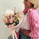 astilbe - 3 pce roses de jardin roses - 5 pce renoncule crème - 3 pce narcisse blanc - 3 pce
