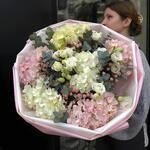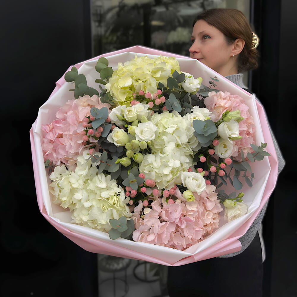 hortensia - 6 pce Lisianthus - 3 pce eucalyptus - 3 pce