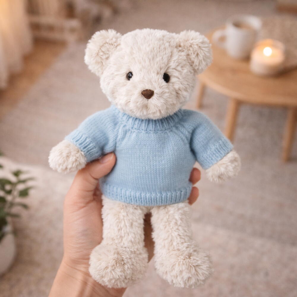 Le Teddy avec pull est une peluche douce et délicate, conçue pour transmettre de la tendresse, du calme et une sensation chaleureuse dès le premier contact. Son design classique se marie à un pull en maille dans des tons doux, disponible en rose, beige ou bleu, apportant une touche douce et attendrissante qui en fait un détail spécial pour offrir de la tendresse. Un complément parfait à offrir seul ou accompagné de fleurs, pensé pour des câlins réconfortants et des moments dont on se souvient.