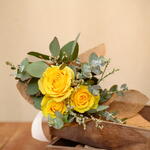 Ce bouquet classique et élégant comprend 4 feuilles d'eucalyptus, 3 roses jaunes et 4 statices, enveloppées méticuleusement dans un emballage en jute. De plus, chaque bouquet est livré avec une étiquette personnalisée gravée au laser, sur laquelle vous pouvez laisser votre propre message. Ce bouquet est parfait pour ajouter une touche de distinction et de beauté naturelle à n'importe quel recoin de votre maison.