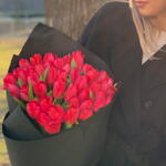 Le baiser de deux lèvres - bouquet de tulipes 55 tulipes rouges