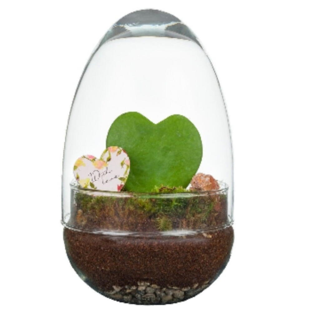Dôme jardin éternel avec cactus naturel en forme de cœur.