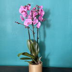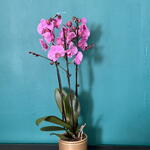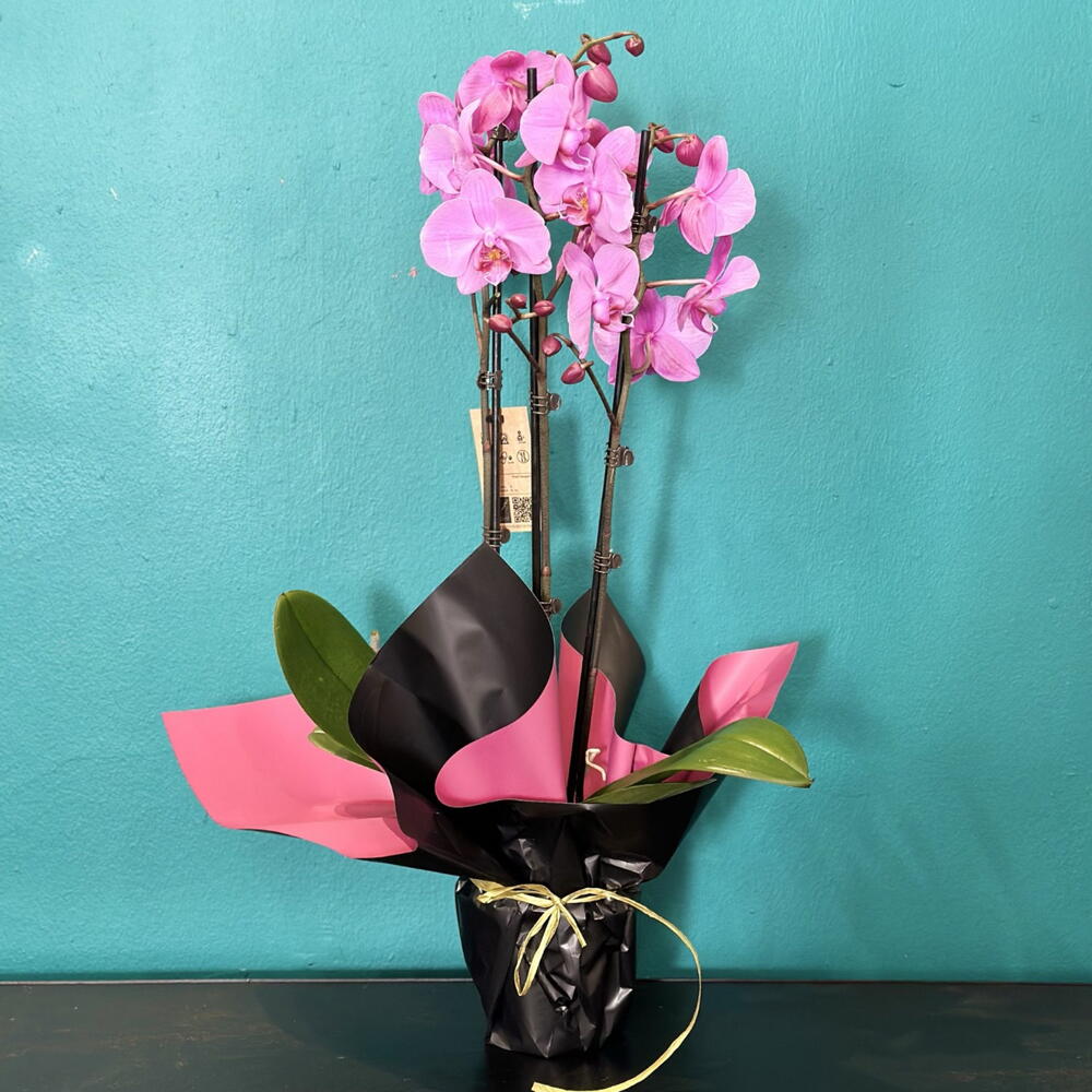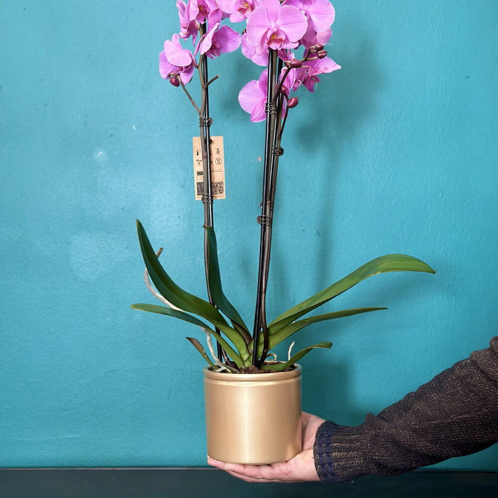 Orquídea rosa natural en maceta decorativa, elegante y sofisticada, ideal para regalar o decorar cualquier espacio interior. Sus flores delicadas aportan un toque de belleza y frescura al hogar u oficina. Incluye macetero decorativo listo para regalar.