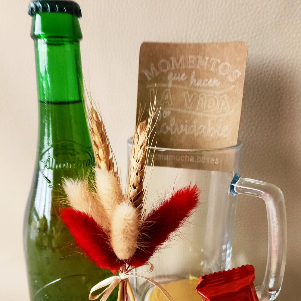 Ce kit de chope de bière est un cadeau original pour la Saint-Valentin, idéal pour celles et ceux qui apprécient les moments simples et authentiques en couple. Un joli détail, pratique et plein d'intention, parfait pour surprendre sans complications. Présenté dans une pochette semi-translucide avec un nœud rouge et une carte de Saint-Valentin, il comprend une chope de bière, une petite bouteille de bière Alhambra, un décapsuleur à manche en bois et des chocolats en forme de cœur. Un cadeau pensé pour trinquer ensemble, partager des rires et célébrer l'amour d'une manière proche et authentique.