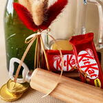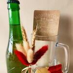 mini Kit Kat - 2 pce bouteille de bière alhambra de 33 cl - 1 pce chope de bière de 380cl - 1 pce ouvreur à manche en bois - 1 pce petit bouquet de fleurs séchées (blé et queue de lapin) dans des tons rouges et beiges - 1 pce