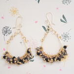 La inspiración para estos aretes largos ha sido las faldas de las bailaoras de flamenco. Más de 30 cuentas entre redondeles, canutillos y cristales le dan el vuelo y soltura que tienen las bases de dichas prendas. Son livianos y muy elegantes, para llevarlo bien sea con el cabello suelto o una coleta muy alta. Ideales para la noche.