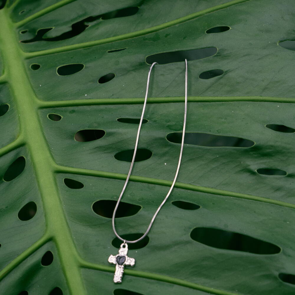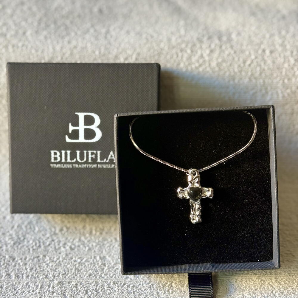 El Collar Cruz Bilufla es una pieza que combina el símbolo ancestral de la cruz con la belleza de los elementos naturales. Hecho a mano en acero inoxidable En el centro, un pequeño relicario permite guardar un detalle significativo — pétalos de rosa, barro preto de Bisalhães o cualquier elemento simbólico que desees conservar. Cada detalle se adapta a ti, haciendo de esta joya una creación única y personal. Detalles: Materiales: acero inoxidable dorado o plateado + relleno personalizable (barro, pétalos, símbolo propio) Hecho a mano en Portugal Hipoalergénico y resistente al agua Personalizable bajo pedido