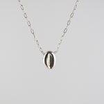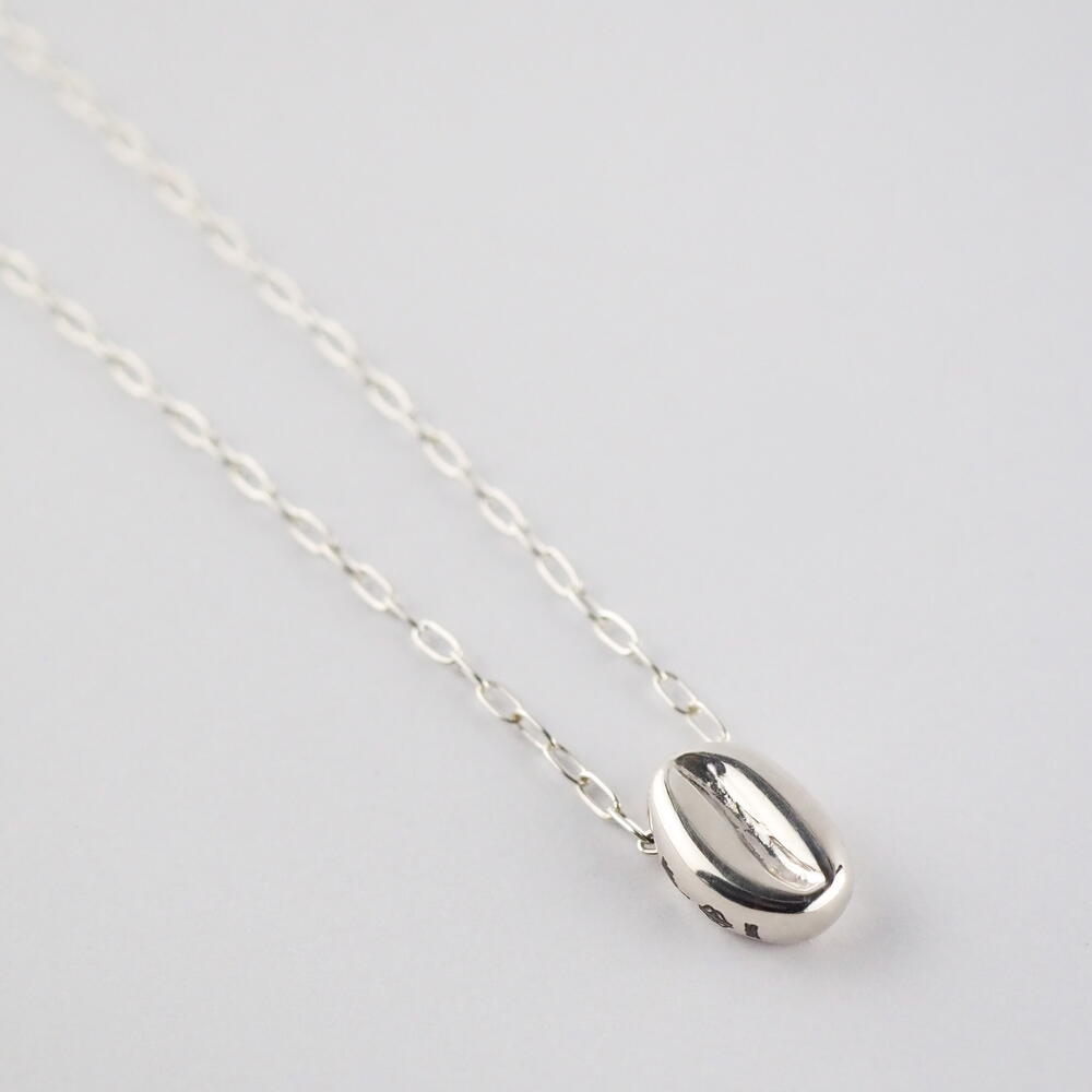Colgante de plata .925 en cadena larga, minimalista y ligero, en forma del grano de café. Parte de la colección Cafeto de Mina Palmera, diseñada por Pablo Galicia y ejecutada por Enrique Albavera. Combínalo con los pendientes café.