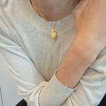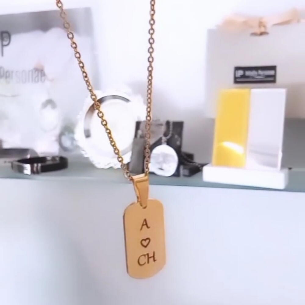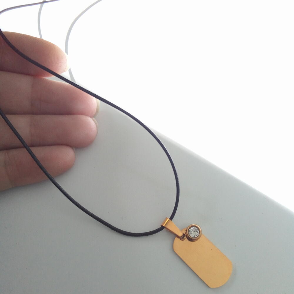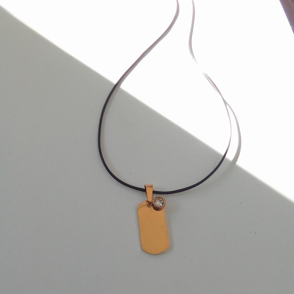Colgante en Acero Inoxidable Oro Personalizado con lo que quieras!. Un nombre, símbolo, Iniciales, imagen, etc. Viene con el detalle de una Circonita,.que le aporta luz y delicadeza. el Colgante Plaquita viene con Cordón Negro con las terminaciones en Acero ORO, pero si lo prefieres puede ir con una cadena Clásica cuyo nombre es Forzada de Acero Oro, como muestra el vídeo y una foto con la modelo. En el caso que prefieras cadena en vez de Cordón Negro (de 45 cm de largo Aprox.) debes aclararlo en Comentarios o Notas del Pedido! También puedes enviarnos un mensaje. O si prefieres un largo distinto del Cordón Negro o de la Cadena Forzada El valor es el mismo ya sea con Cordón o con Cadena!
