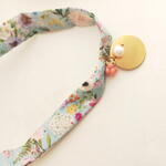 Acero inoxidable con baño oro Perla cultivada natural Collar tela estampa liberty Racimo mini cristalitos checos