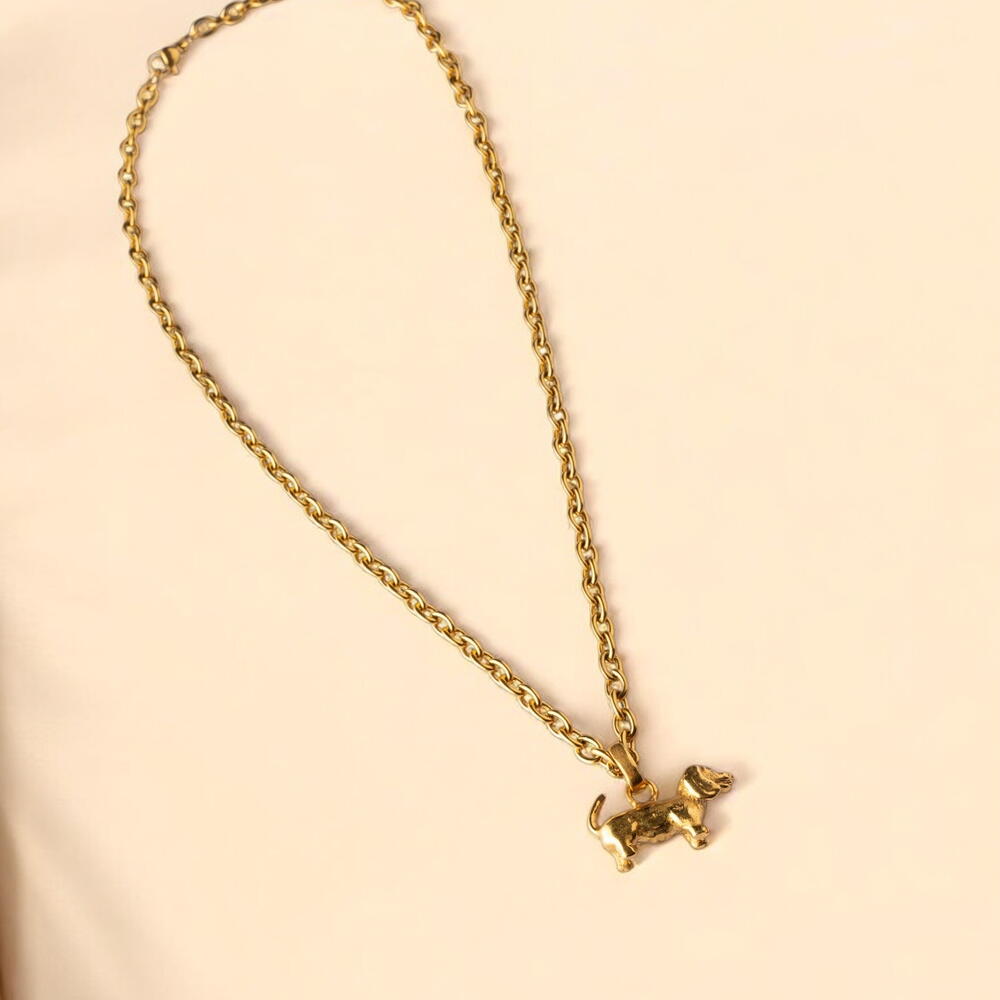 A dachshund with a Barcelona soul. Designed to be gifted with intention. Inspired by Barcelona, where dachshunds are part of the city’s everyday charm—this collar is a thoughtful way to express love and appreciation. More than an accessory, it’s a meaningful gift that celebrates the bond with the one who makes a house feel like home: a dachshund. Elevate your style with this stunning pendant necklace. Crafted from 24K bronze, it boasts an opulent gold plating of 3 µm that glimmers with every movement. This luxurious piece is a true embodiment of sophistication and glamour, making it a must-have addition to every jewelry collection.