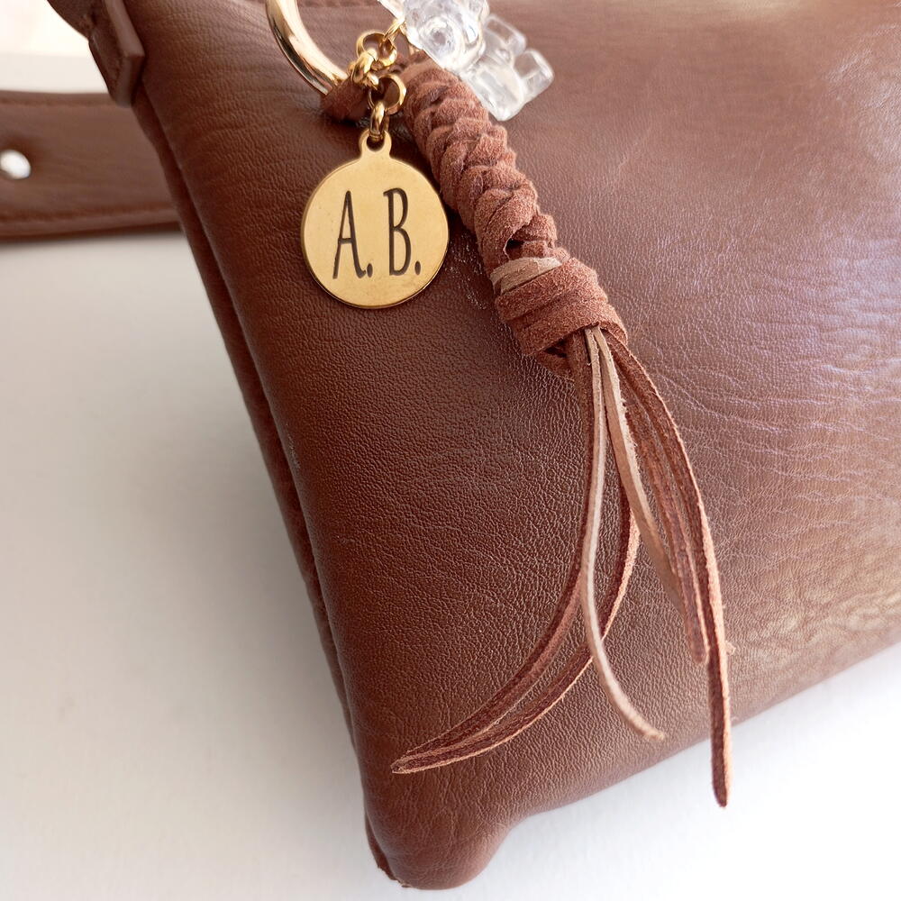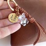 Hermoso Llavero, ideal para llevar en Bolsos para añadir a los outfits un touch bonito y personal! Para regalar o complementar un detalle! Puedes elegir entre los 3 tonos de la foto: negro, natural, marrón. Los grabados están incluidos! Y como opcional y por el mismo precio! puedes indicarnos si quieres que lleve el delicado Osito realizado artesanalmente en Resina! O lo prefieres Sólo?!! No te pierdas su primo lanzamiento!!!