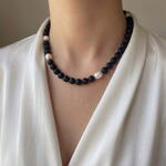 Dale a las personas y a ti mismo los regalos correctos. ¿Qué puede ser más intrigante y atractivo que un collar negro con cuentas de perla? ¡Siempre es una combinación de colores infalible! ✔️ Herrajes de alta calidad e hipoalergénicos con baño de rodio ✔️ Cuerda metálica de joyería ✔️ Perlas de río 8 mm ✔️ Cuentas de ágata negra mate de 8 mm de diámetro ✔️ Longitud del producto: 40 cm La decoración viene en una envoltura de regalo y en una funda, lista para regalar o guardarla de forma segura. Trabajo de autor, trato manual. Y eso significa que no volverás a encontrarte con nadie.