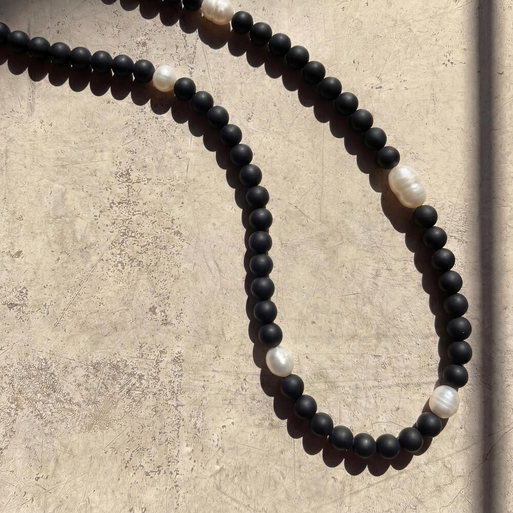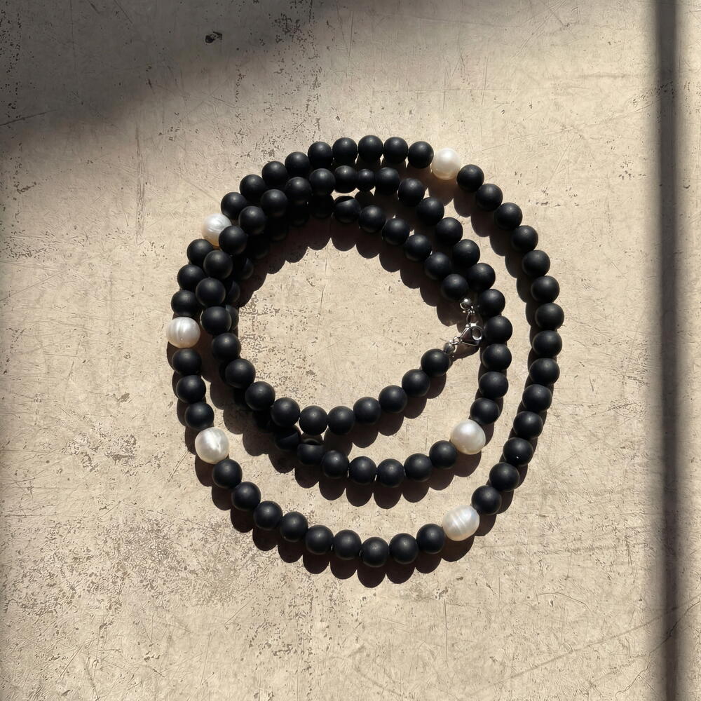 Dale a las personas y a ti mismo los regalos correctos. ¿Qué puede ser más intrigante y atractivo que un collar negro con cuentas de perla? ¡Siempre es una combinación de colores infalible! ✔️ Herrajes de alta calidad e hipoalergénicos con baño de rodio ✔️ Cuerda metálica de joyería ✔️ Perlas de río 8 mm ✔️ Cuentas de ágata negra mate de 8 mm de diámetro ✔️ Longitud del producto: 40 cm La decoración viene en una envoltura de regalo y en una funda, lista para regalar o guardarla de forma segura. Trabajo de autor, trato manual. Y eso significa que no volverás a encontrarte con nadie.