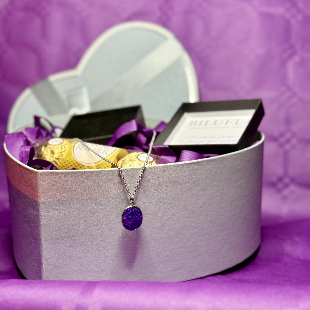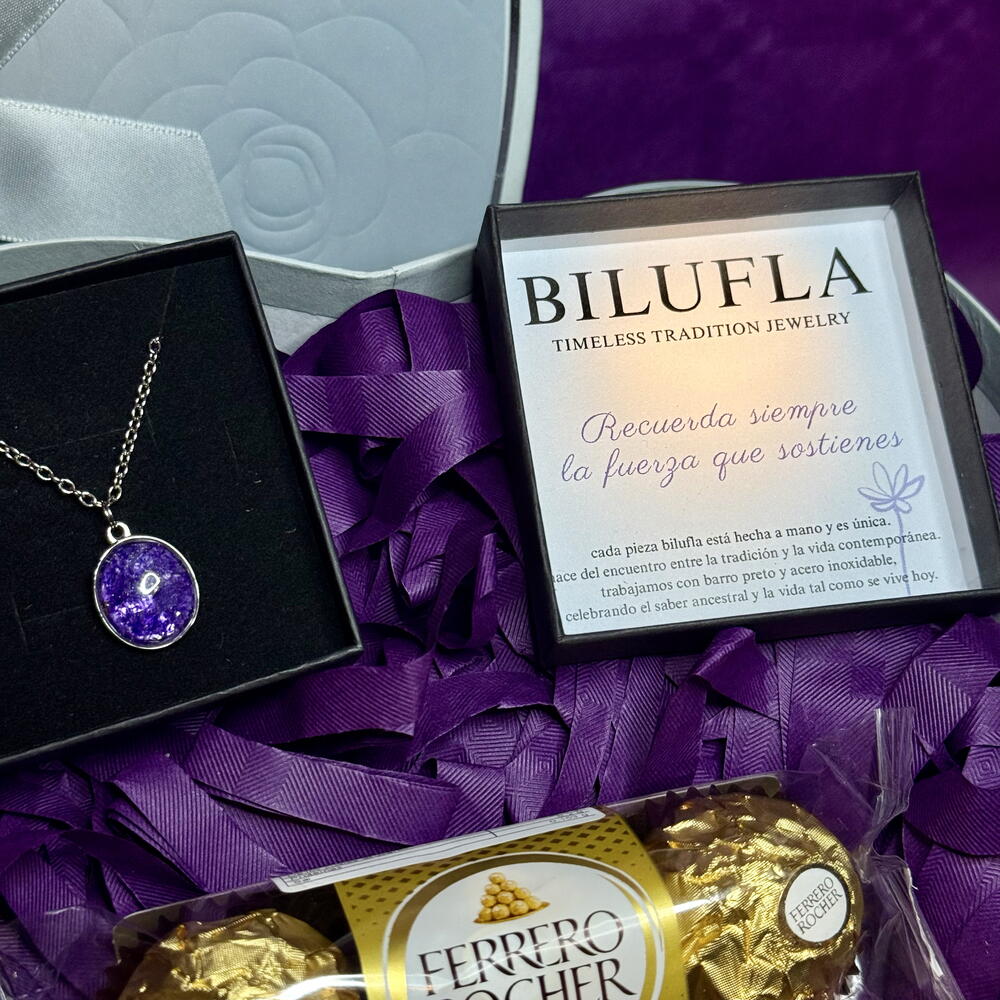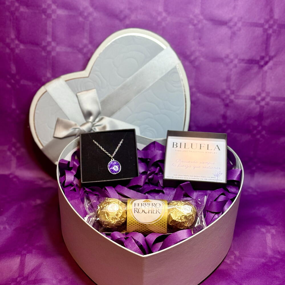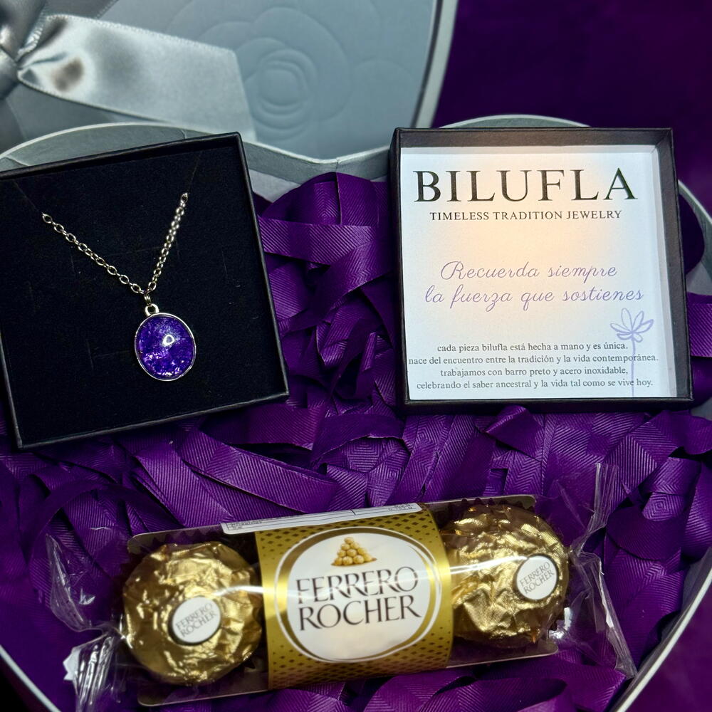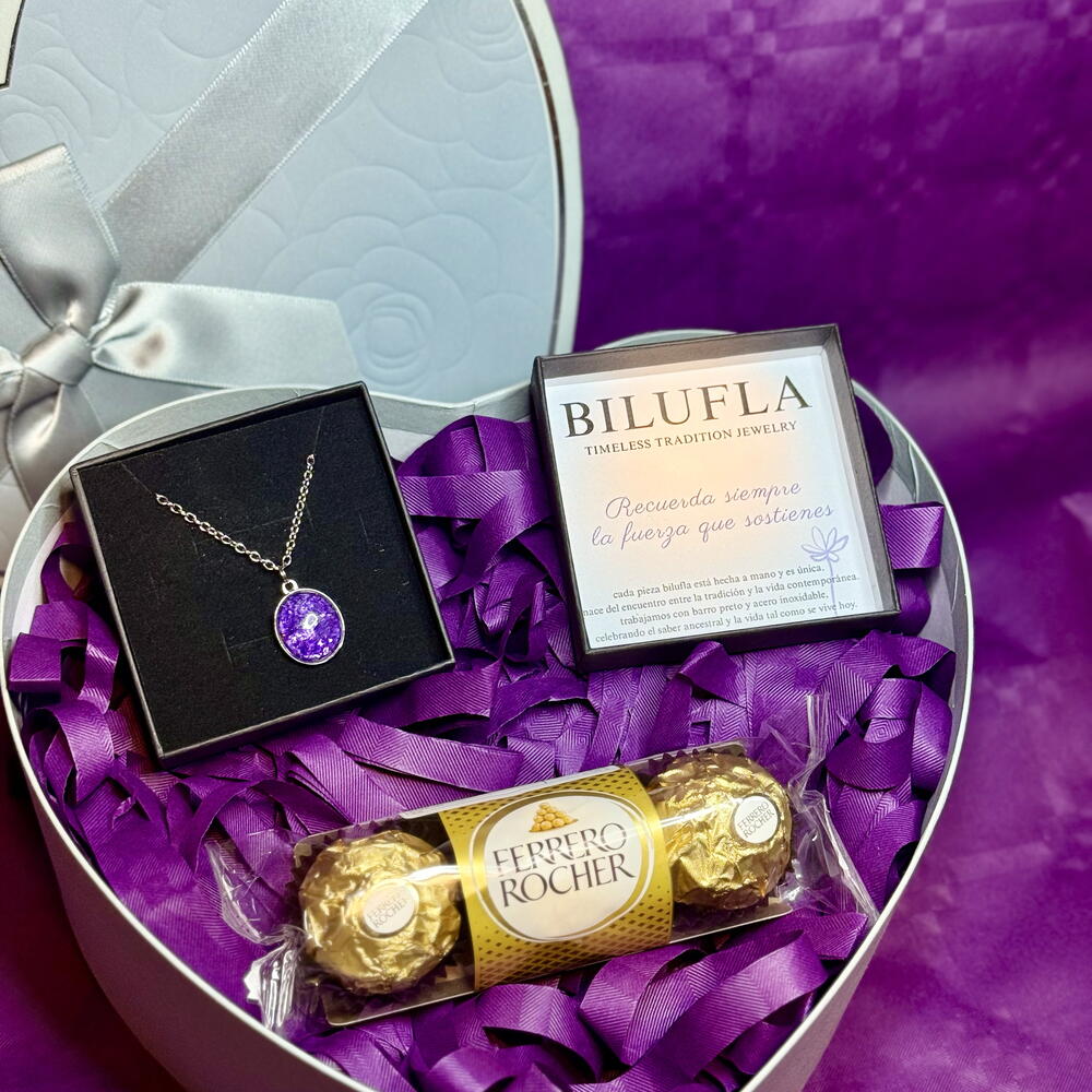 Un detalle especial para conmemorar el Día Internacional de la Mujer 8M. Este pack incluye un corazón acompañado de un collar con flor siempreviva en tono lila, hecho a mano, símbolo de fuerza, resiliencia y permanencia. La siempreviva representa a las mujeres que florecen incluso en los entornos más difíciles, manteniendo su esencia intacta. Incluye: 💜 Corazón decorativo 🪻Collar con flor siempreviva lila (hecho a mano) 🍫Bombones Ferrero Rocher para endulzar el día Un regalo con significado, delicado y elegante, perfecto para reconocer, agradecer y celebrar la fuerza femenina en una fecha tan especial. Ideal para regalar a una mujer importante en tu vida o para autoregalarte un símbolo de tu propia historia.