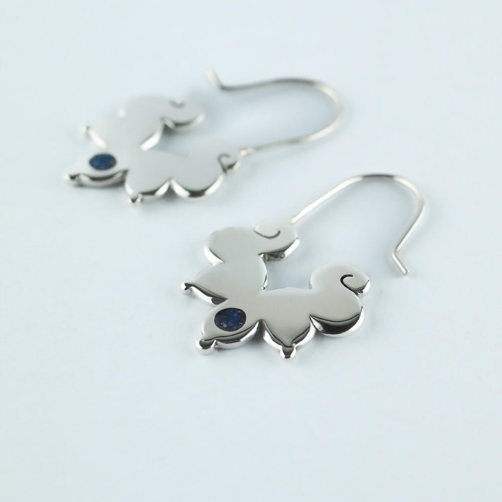 Pendientes colgantes estilo prehispánico hechos en plata de ley .925 con incrustaciones de lapislázuli
