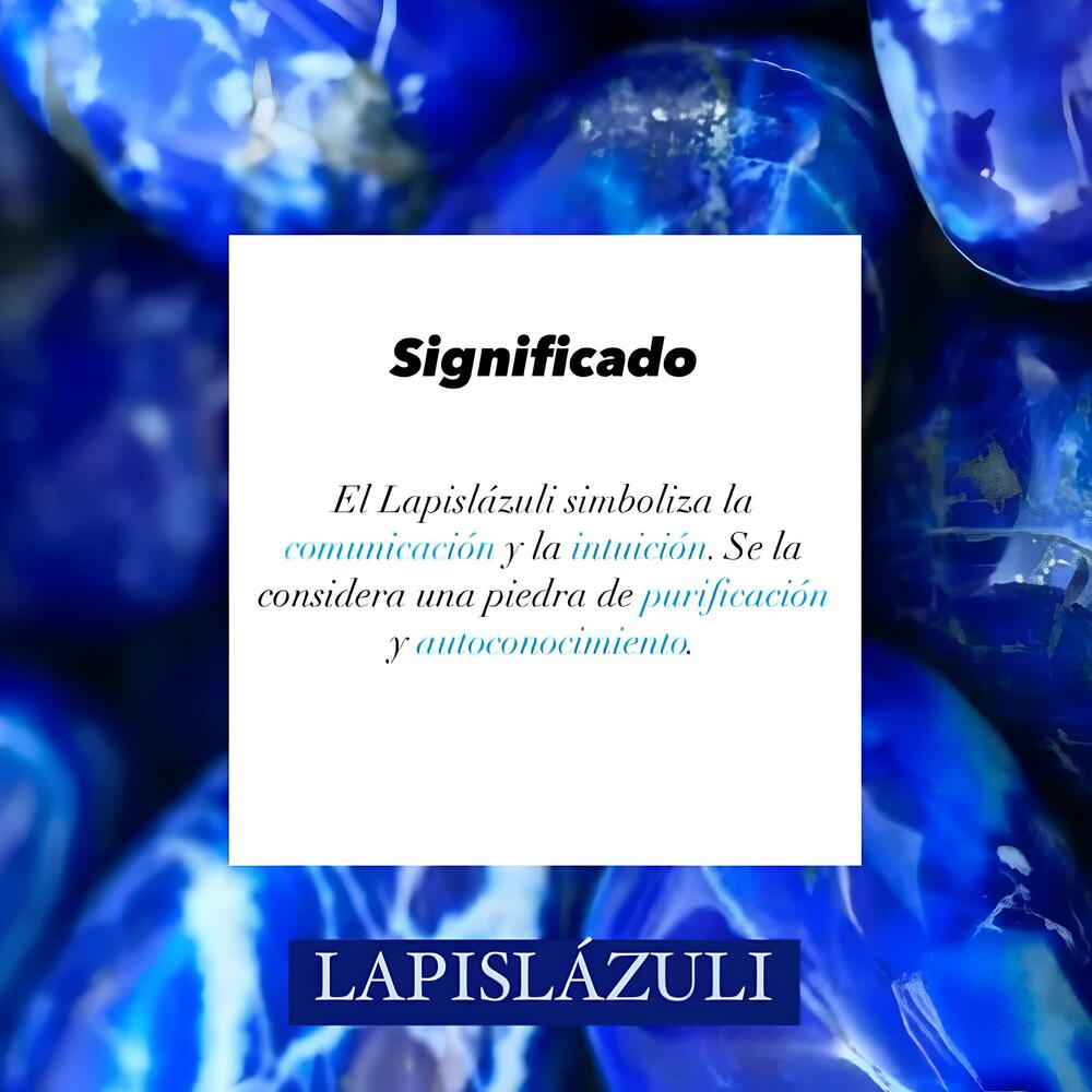 El Lapislázuli simboliza la comunicación y la intuición. Se la considera una piedra de purificación y autoconocimiento.