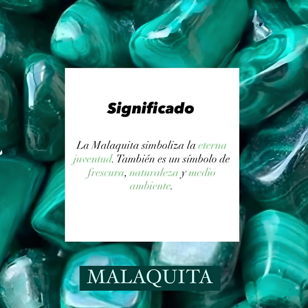 La Malaquita simboliza la eterna juventud. También es un símbolo de frescura, naturaleza y medio ambiente.