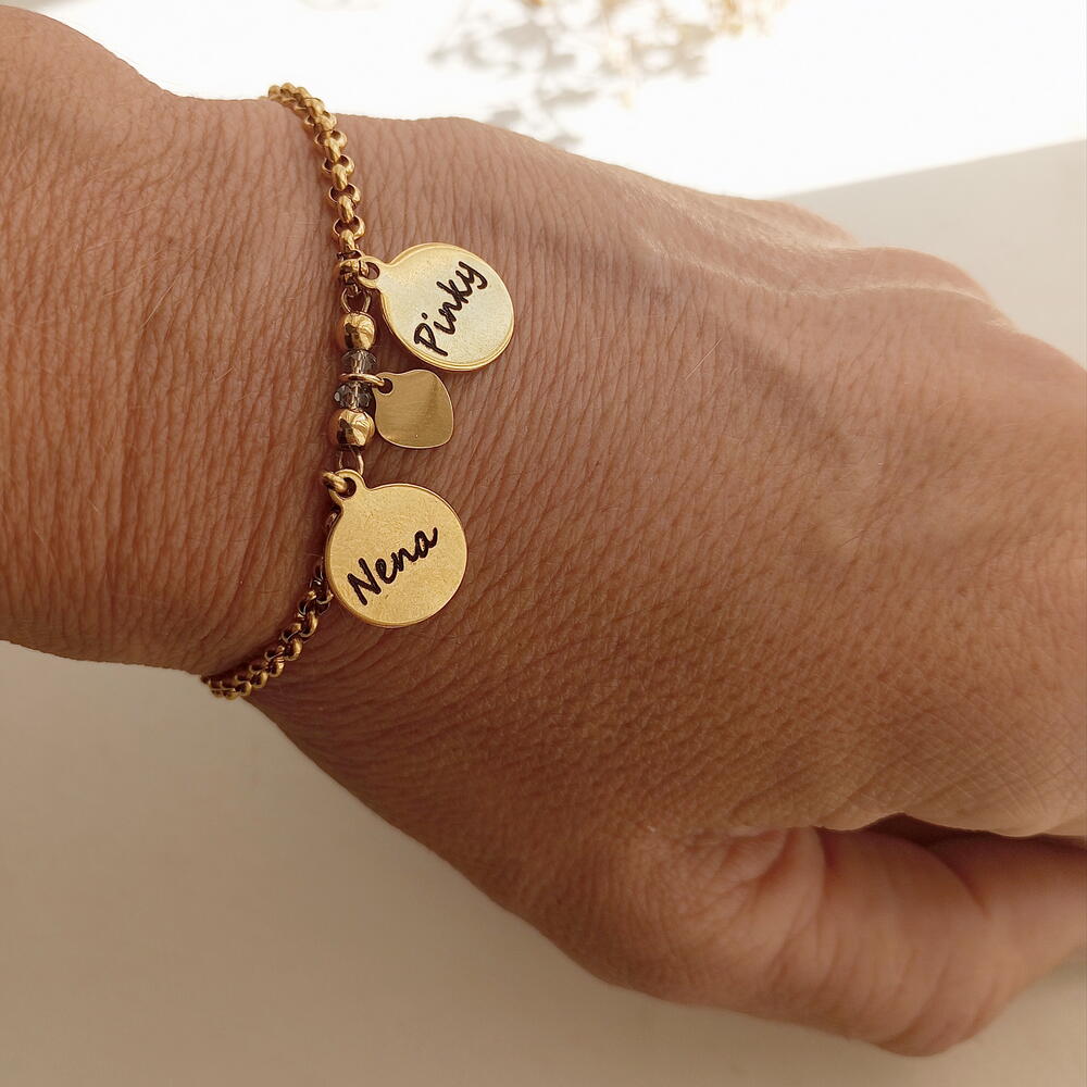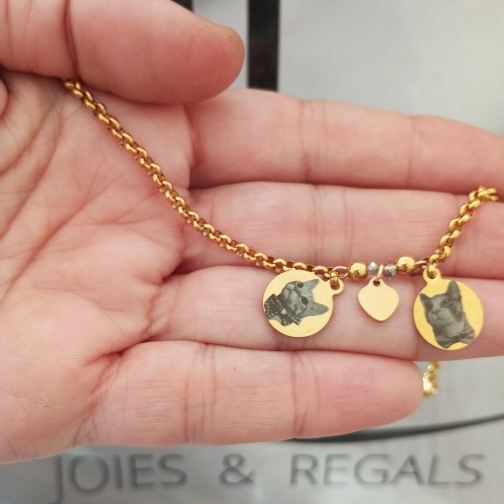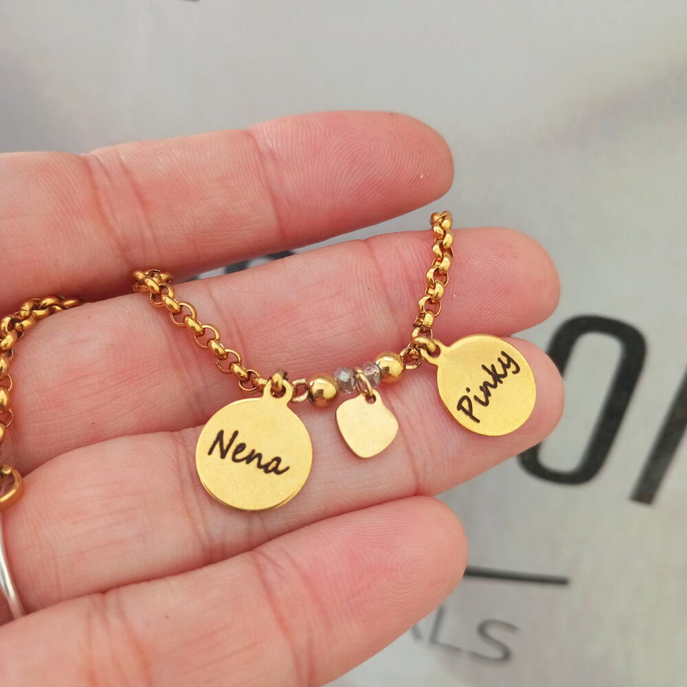 Elegante Pulsera con el detalle de dos Colgantes Charms Personalizados con grabados de foto, nombres, iniciales o lo que quieras! Ideal para regalar y sorprender con una pieza única y con mucho sentimiento!