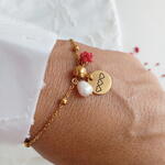 Hermosa y delicada Pulsera Personalizada con detalles únicos. La podemos personalizar con Nombre de un lado de la medalla y del otro lado Con el dibujo o símbolo que tú quieras!