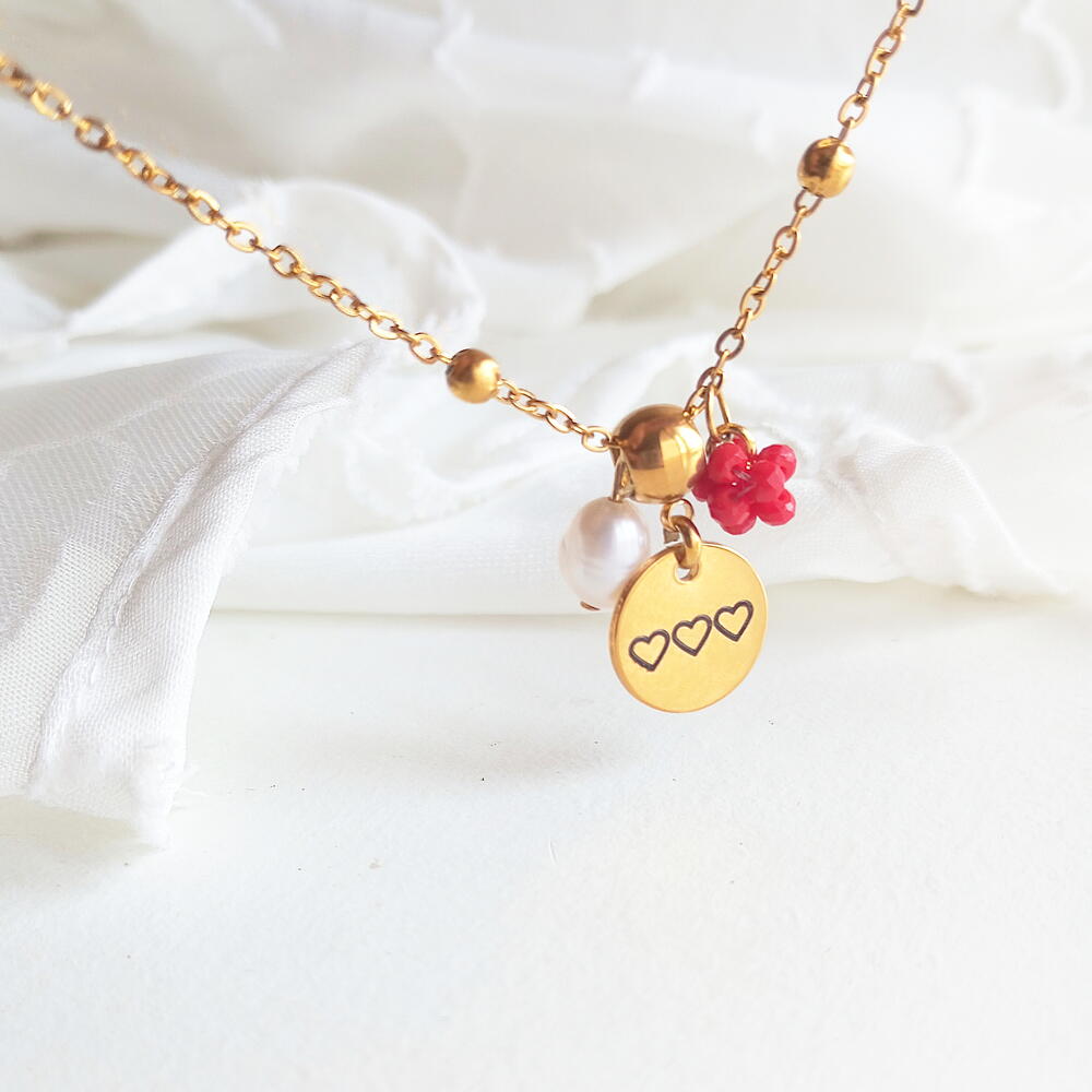 Acero inoxidable con baño de oro Perla natural mini cristales checos