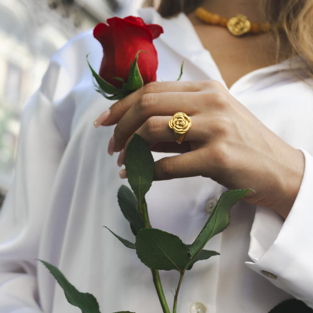 This rose ring is Crafted from high quality bronze and coated with a 24k gold layer of 3 microns, this piece exudes timeless elegance. The Sant Jordi rose and the city’s iconic panot come together in this jewel. Created to be gifted, it is a delicate tribute to love, tradition, and the streets that inspire us. A meaningful piece designed to celebrate special moments and timeless connections, carrying the soul of the city in every detail.