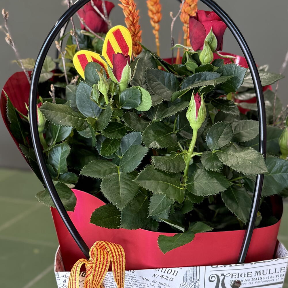 Rosa en maceta que, con los cuidados adecuados (riego y luz solar), puede durar mucho tiempo. El período de floración es de hasta un mes. Si se desea, se pueden añadir fertilizantes para prolongar la floración. Es una excelente alternativa a la rosa cortada, cuya duración suele ser de solo 4 días