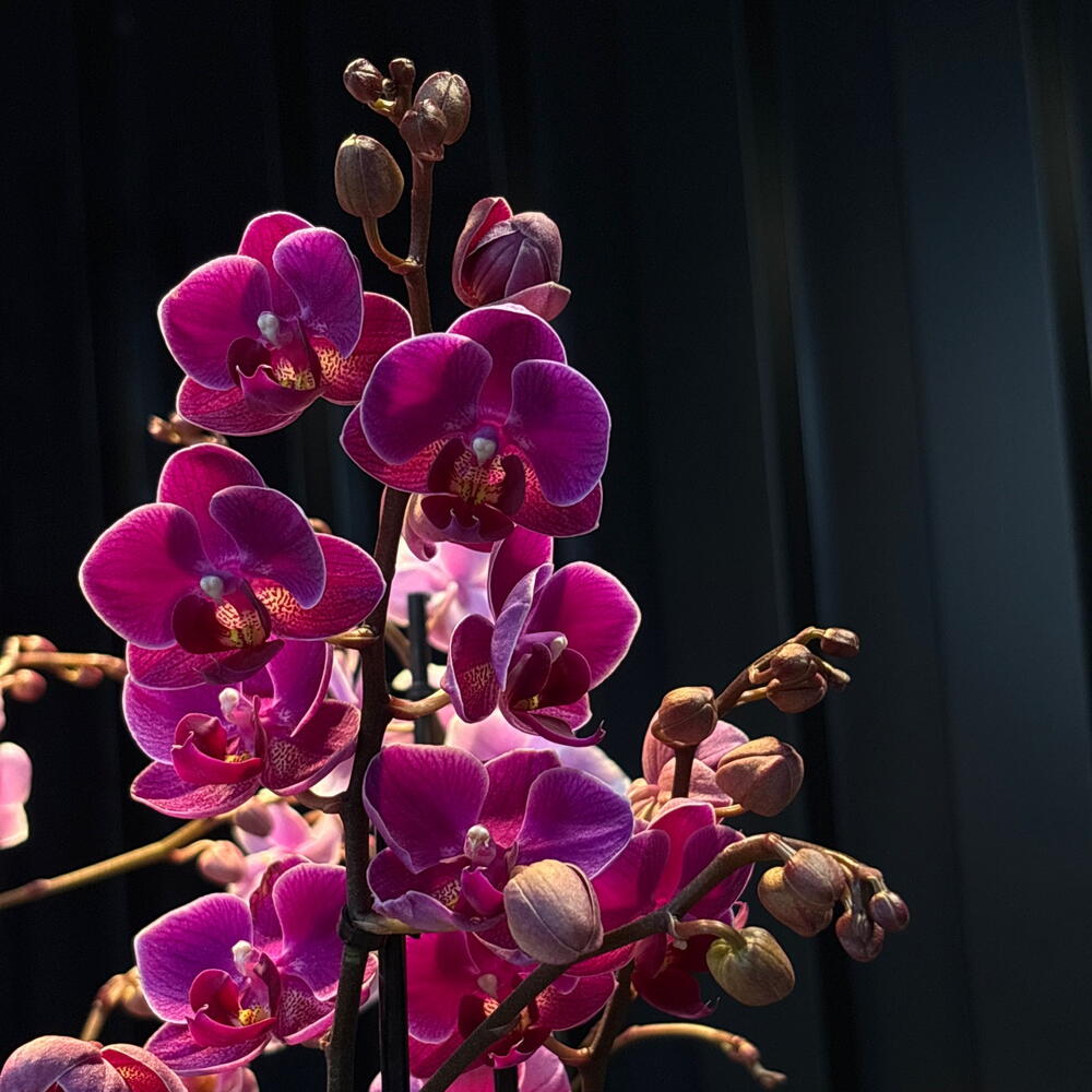 • Luz: mucha luz natural, pero sin sol directo. Cerca de una ventana es ideal. • Riego: 1 vez a la semana aprox. Riega solo cuando el sustrato esté seco; mejor por inmersión y deja escurrir bien. • Temperatura: entre 18 °C y 25 °C, evita corrientes de aire y cambios bruscos. • Humedad: les gusta la humedad. Puedes pulverizar ligeramente alrededor (no sobre las flores). • Ubicación: no cerca de calefacción ni aire acondicionado. • Después de la floración: cuando caigan las flores, corta la vara por encima del segundo nudo o desde la base si está seca.