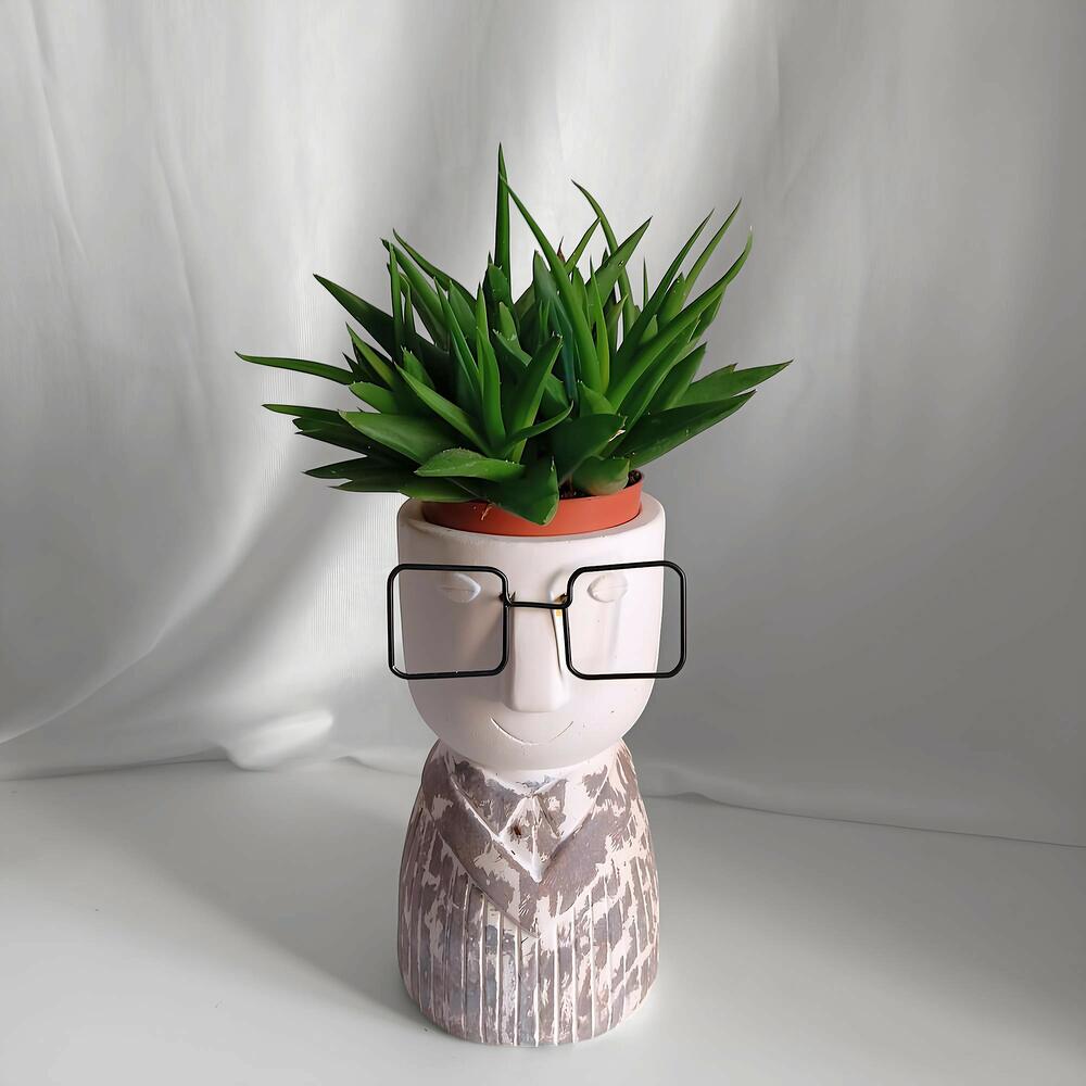 Dale vida a tu espacio con esta maceta coronada por un cactus. Una combinación de arte y naturaleza que convierte cualquier rincón en una pequeña galería viva.