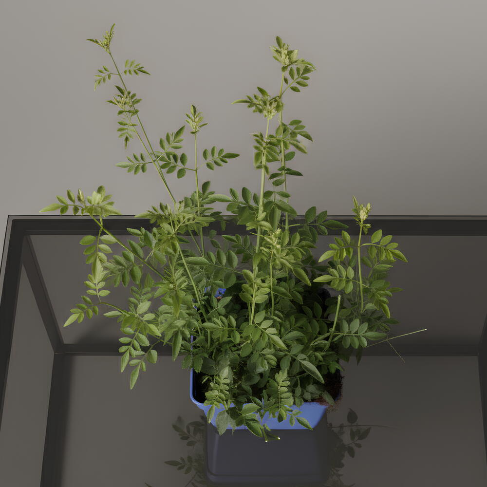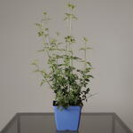 Jasminum officinale, también conocido como jazmín común. Se distingue por sus delgadas ramas verticales y hojas compuestas de color verde oscuro. Con el tiempo, esta planta trepadora florece con fragantes flores blancas.