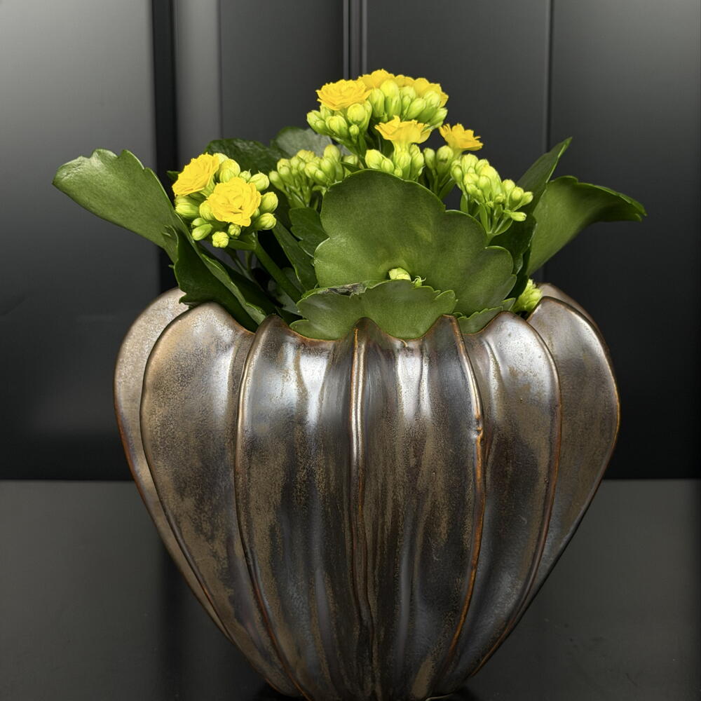 Planta elegante presentada en una maceta decorativa, perfecta para dar un toque natural y sofisticado a cualquier espacio. Sus flores delicadas y su estilo moderno la convierten en un regalo ideal para cualquier ocasión o en una hermosa decoración para el hogar u oficina. Una combinación de belleza natural y diseño que transmite calma, frescura y armonía.
