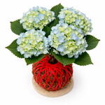 Planta Hortensia con maceta de diseño personalizado - Kokedama de Hortensia: Planta elegante y muy ornamental, con flores grandes y vistosas. Ideal para espacios luminosos sin sol directo. Aporta un toque fresco y sofisticado con cuidados moderados y riego regular