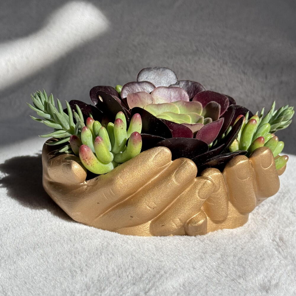Las manos están hechas de yeso y tratadas con barniz hidrófugo. Se puede utilizar para llaves, monedas, dulces, joyas, etc. Un gran regalo que durará mucho tiempo.