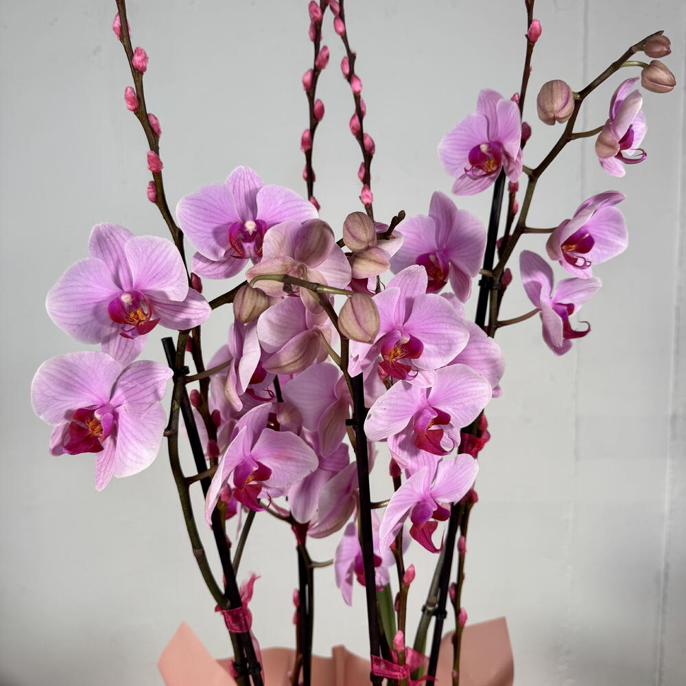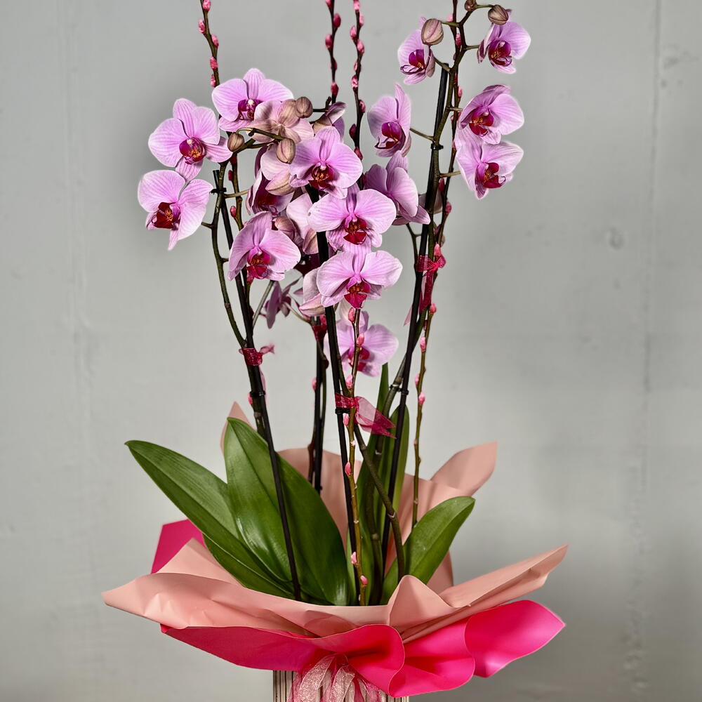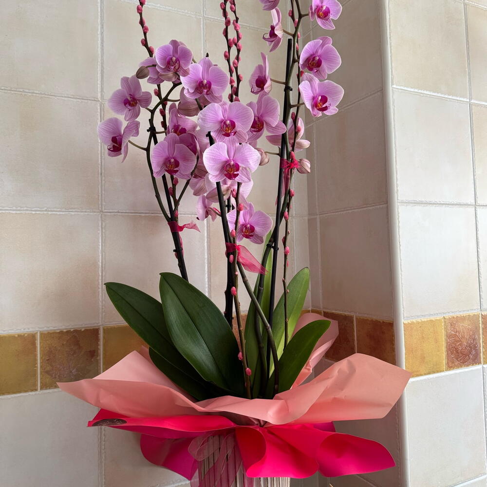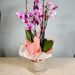 Una hermosa planta de orquídea en un elegante jarrón de cerámica. Tenga en cuenta que la orquídea puede venir en un color diferente, según disponibilidad. Por favor, especifique su preferencia en las notas del chat.