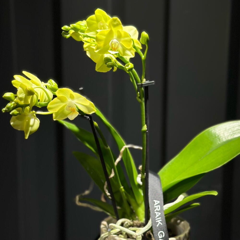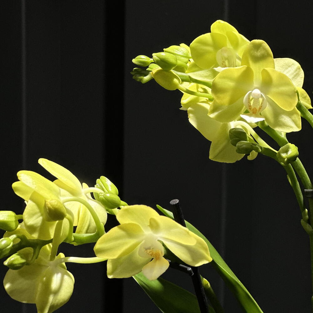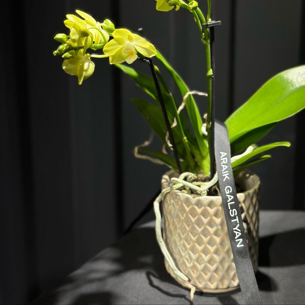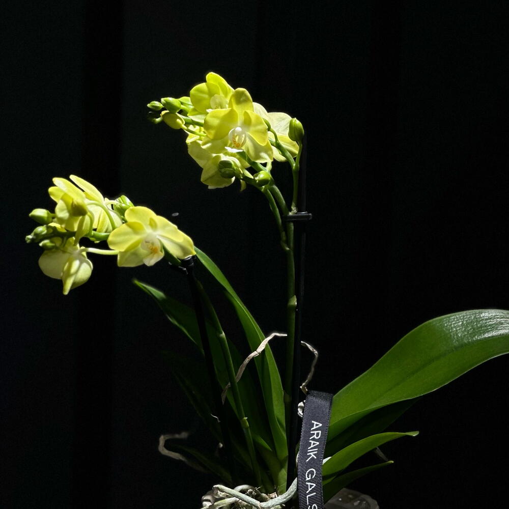 Orquídea phalaenopsis de un color amarillo suave y luminoso. Flor elegante y duradera. La maceta de la foto no está incluida y se vende por separado.