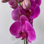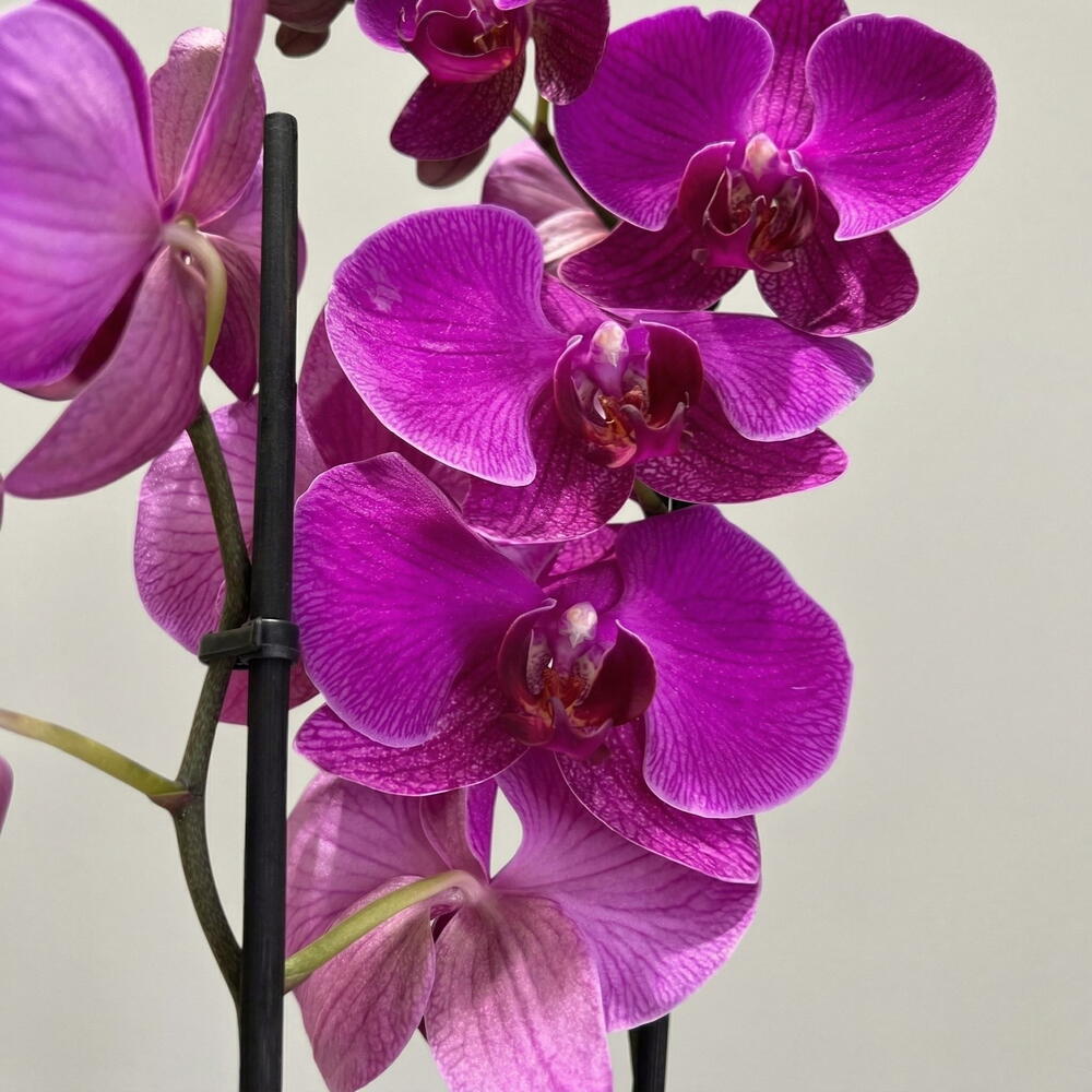 Una elegante orquídea phalaenopsis en tonos morada que destaca por su sofisticación y belleza exótica. Sus flores delicadas y perfectamente formadas aportan un toque moderno y refinado a cualquier espacio. Esta planta es símbolo de amor, lujo y armonía, ideal para regalar en ocasiones especiales como cumpleaños, aniversarios, inauguraciones o como detalle decorativo. Su presencia transmite calma y estilo, convirtiéndola en un acento perfecto para el hogar u oficina. Además, es una opción duradera que puede florecer durante varias semanas e incluso volver a florecer con los cuidados adecuados. Un regalo distinguido que combina estética y naturaleza.