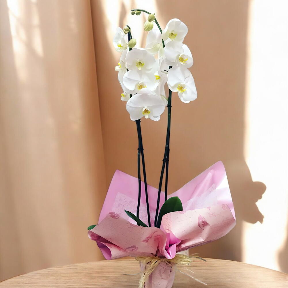 La orquídea blanca, con su delicada belleza y elegancia, cautiva con su encanto sutil y sofisticado. Con pétalos de un blanco puro y brillante, esta planta es un símbolo de pureza y refinamiento. Adaptándose bien a interiores, su floración deslumbrante perdura semanas o incluso meses, añadiendo un toque de serenidad y elegancia al entorno. Representa la pureza y la gracia, siendo un regalo ideal para expresar admiración o amor. En resumen, la orquídea blanca es una joya de la naturaleza que eleva el espíritu con su serena presencia y su encanto temporal.