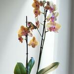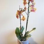 Orquídea Phalaenopsis en un delicado tono durazno con matices rosados y centro fucsia. Sus flores elegantes y exóticas crean un ambiente sereno y sofisticado, perfecta para decorar salas, oficinas o para regalar en ocasiones especiales.