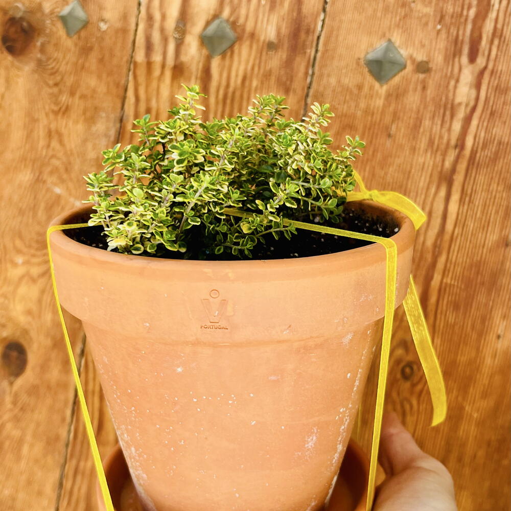 Planta tomillo limon en maceta + plato terracota