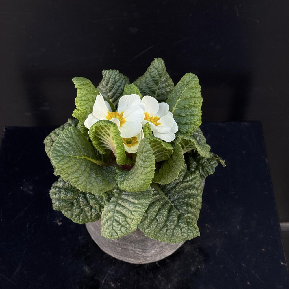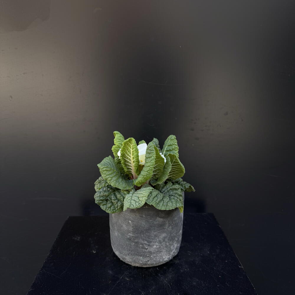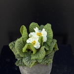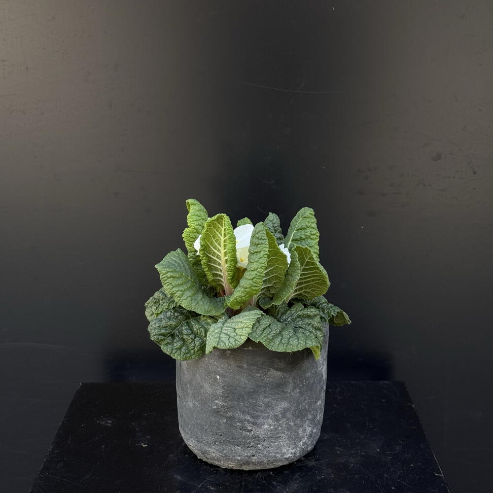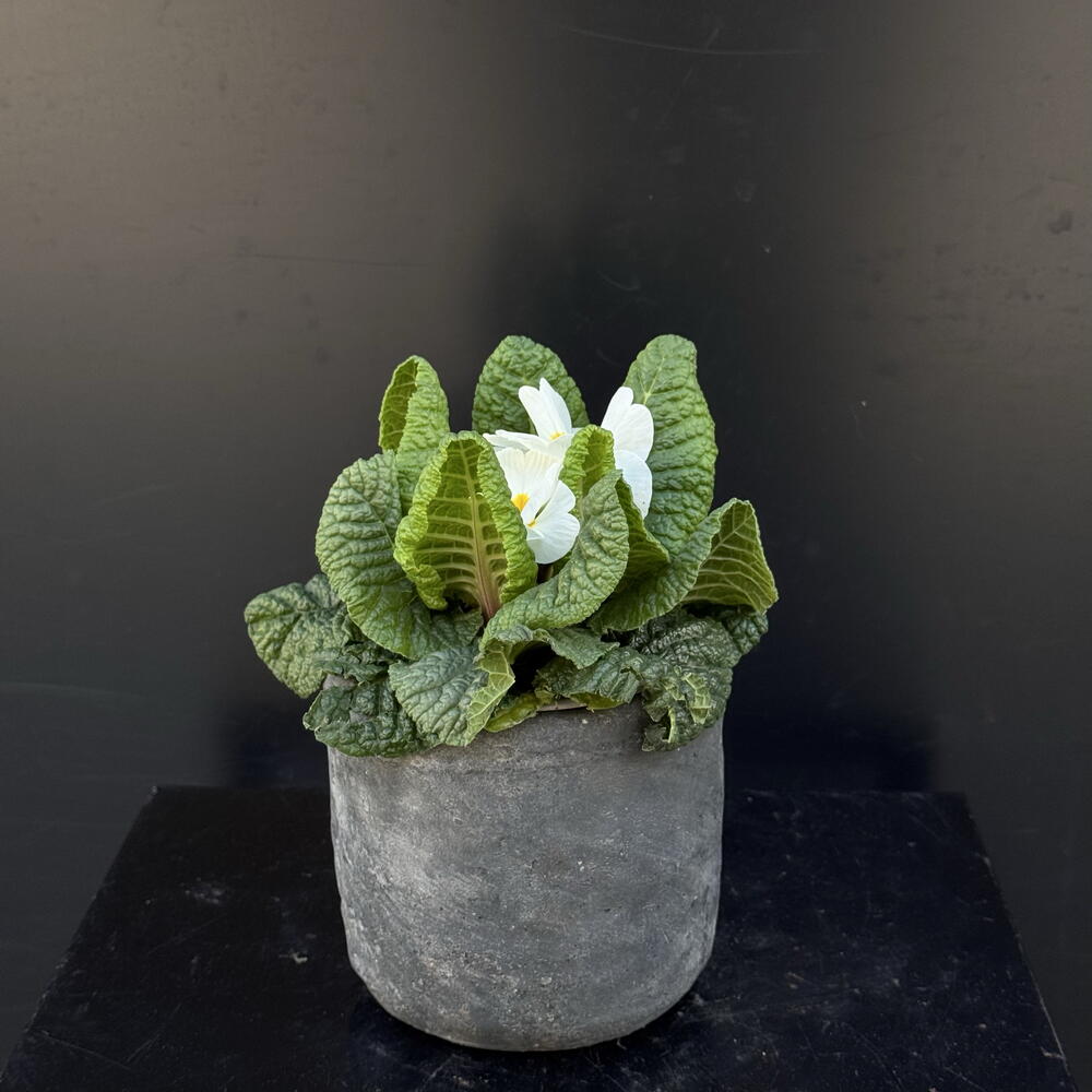 Primula blanca en maceta de ceramica