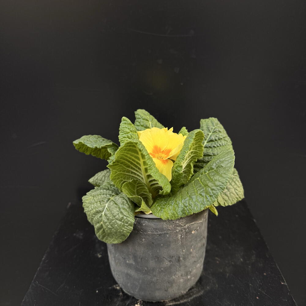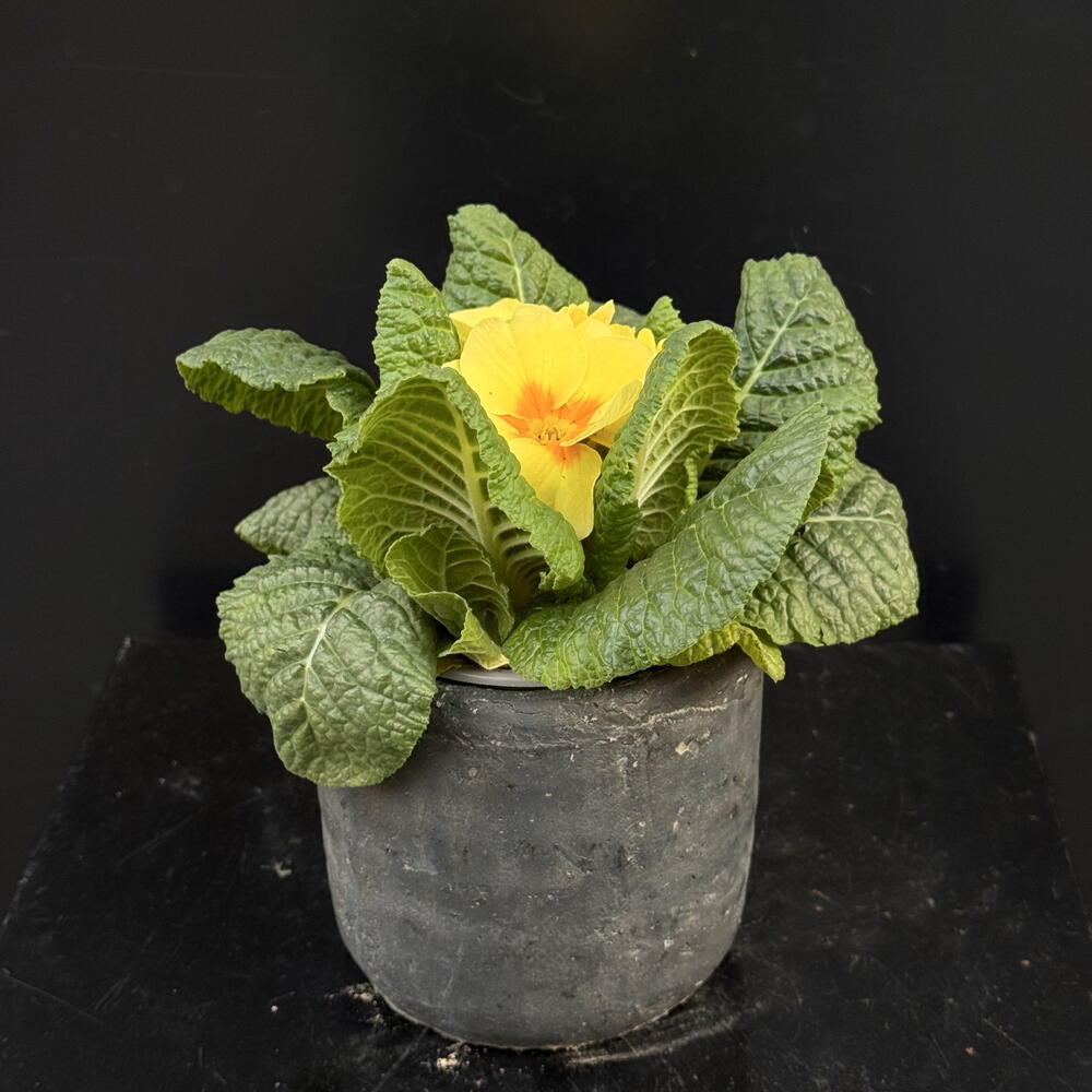 Planta de prímula con flores amarillas brillantes, presentada en maceta. Una opción alegre y delicada que aporta color y frescura a cualquier espacio interior.