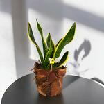 Es ideal para interiores debido a su capacidad para purificar el aire y su fácil mantenimiento. La maceta de estilo natural complementa perfectamente su belleza.