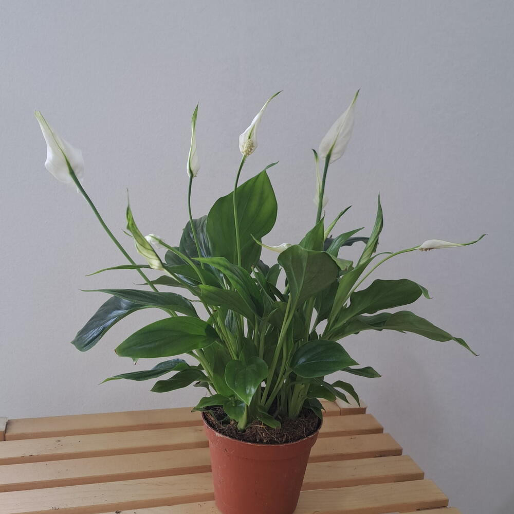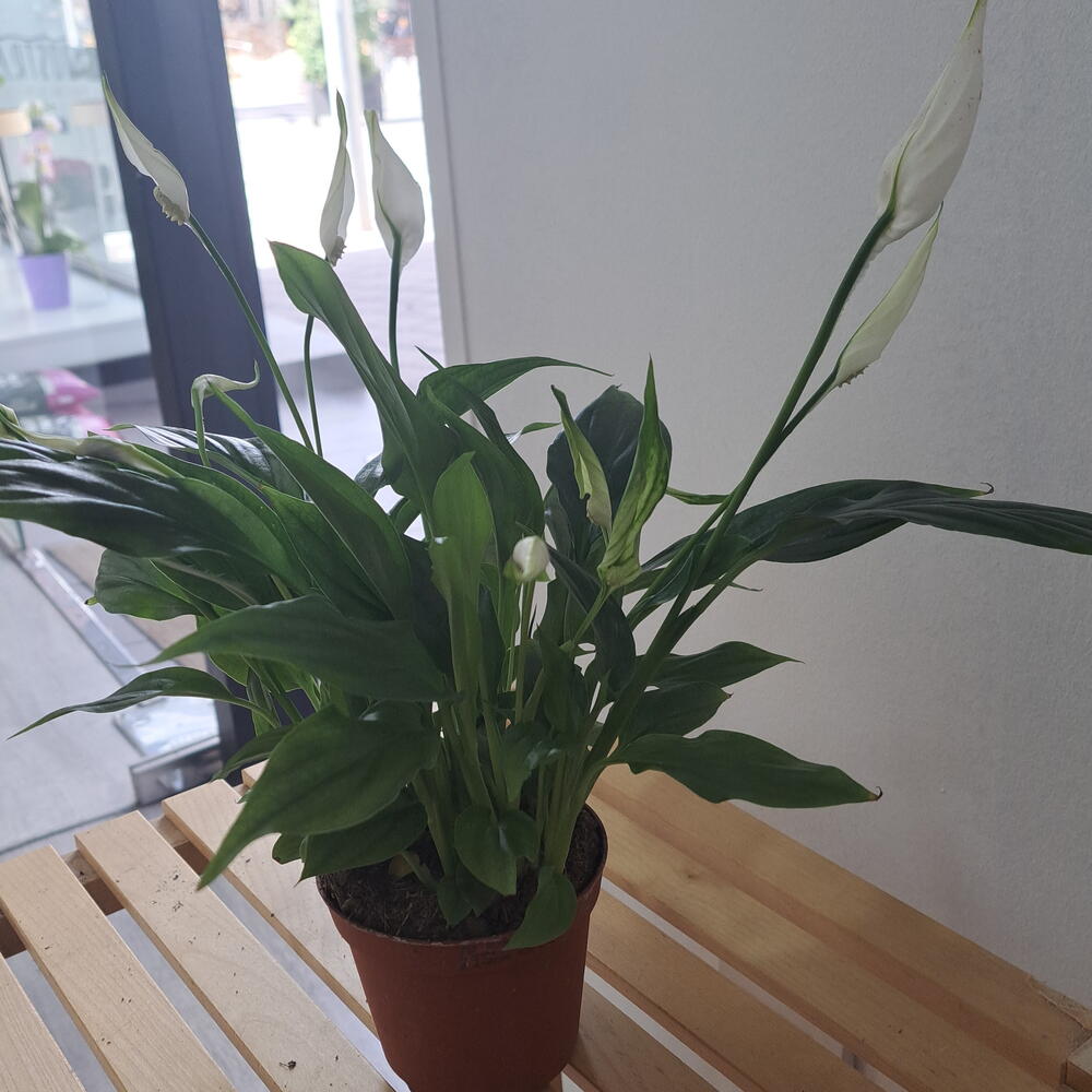 Espatifilo pequeño o “lirio de la paz”, una planta de interior elegante y fácil de cuidar. Sus hojas verdes brillantes y sus delicadas flores blancas aportan frescura y calma a cualquier espacio. Perfecta para regalar o decorar hogares y oficinas. 🌿🤍